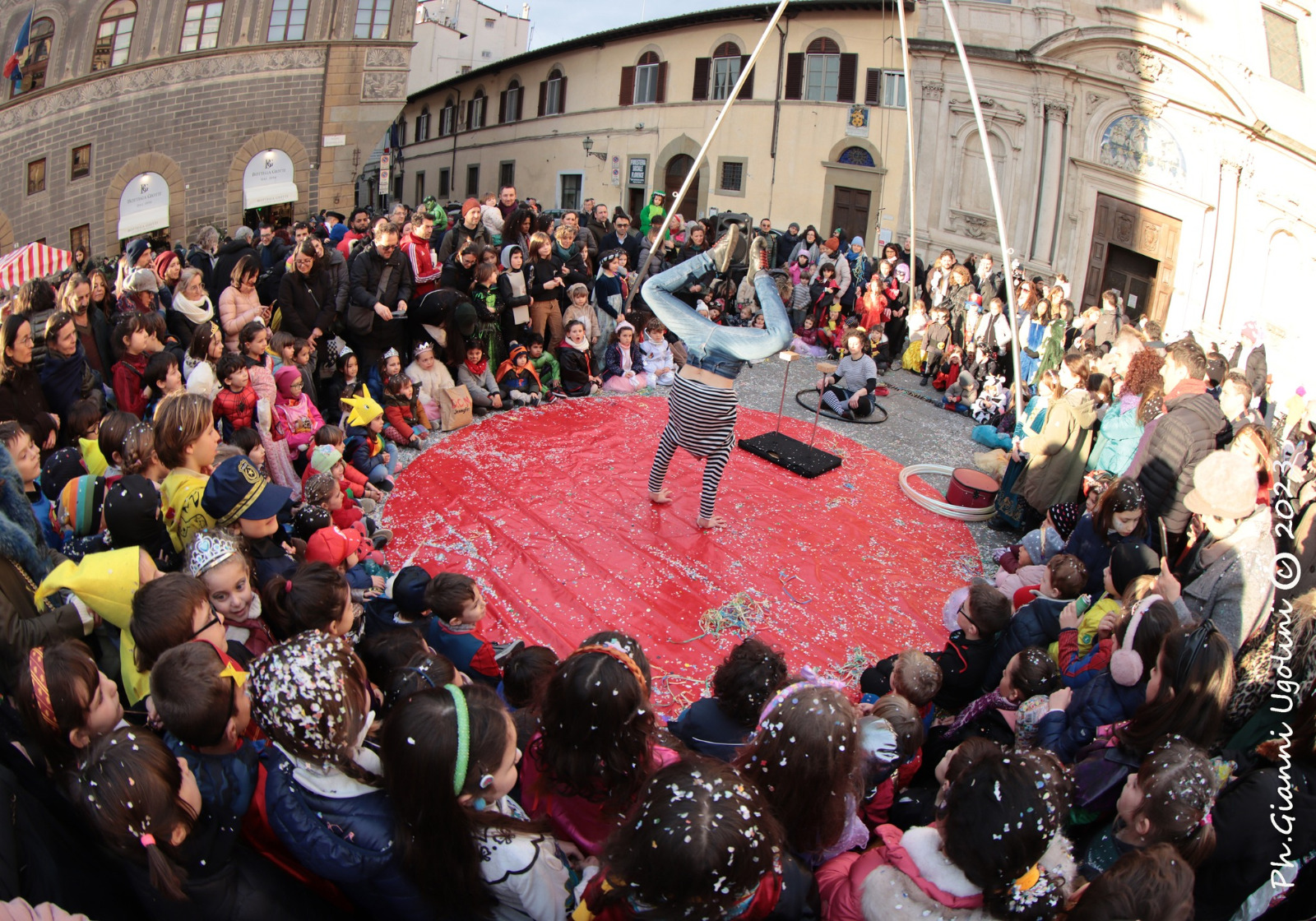 Di e con: Massimo Minervini, Maria Sole Sbrana, Federica Pennetta e Antonio Arnone. Discipline: verticali, giocoleria (hula hoop), acrobatica aerea (cerchio, corda, tessuto), acrobalance (acrobatica a due);