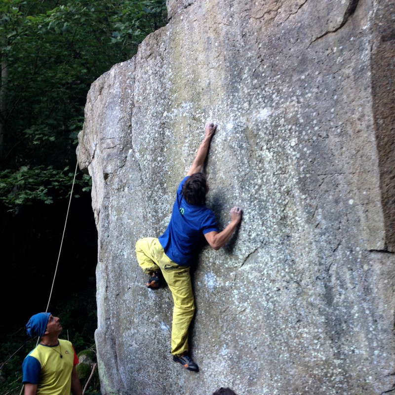 Piccolo, ma stupendo, il settore “Quattro Volte” propone una serie di linee psycho in ambiente un po’ isolato. Il sasso si trova sulla sinistra, seguendo una traccia in salita verso la rocca.